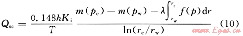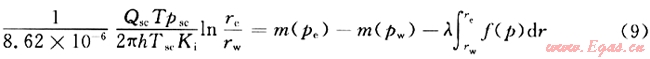 是由啟動(dòng)壓力梯度引起的附加壓降,其值大小與地層中壓力分布有關(guān)。于是在法定單位之下,考慮氣體滑脫、啟動(dòng)壓力梯度、應(yīng)力敏感下的直井產(chǎn)量為: