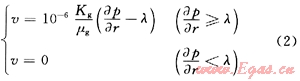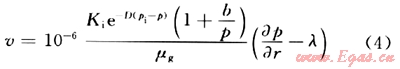 )通過實(shí)驗(yàn)難以準(zhǔn)確獲得,所以直接用地層壓力(p)代入進(jìn)行推導(dǎo)。 考慮啟動(dòng)壓力梯度的氣體運(yùn)動(dòng)方程為:
