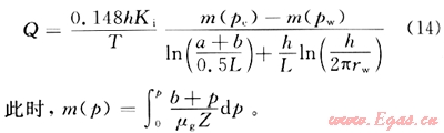 因此,根據(jù)等值滲流阻力公式,考慮氣體滑脫、啟動(dòng)壓力梯度、應(yīng)力敏感的水平井產(chǎn)能公式為: