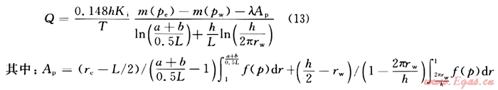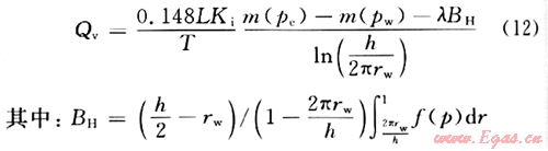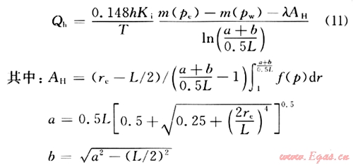 ,從而將長半軸為a、短半軸為b的橢圓形區(qū)域變換成半徑為(a+b)/(0.5L)的圓形區(qū)域,將線段(-L/2,0)到(L/2,0)映射成單位圓周在ξ平面內(nèi)的流動(dòng),可以認(rèn)為是半徑(n+b)/(0.5L)的圓形供給區(qū)域內(nèi)有一口半徑為1的直井的情形。此時(shí),水平平面上的啟動(dòng)壓力梯度就變?yōu)椋?img src="/d/file/2d50a8431d038fbb7a18ec760af0c76d.gif" />,得水平井在水平面的流量為:
