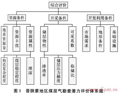 關鍵詞:煤層氣;勘查潛力;綜合評價;層次分析法;灰色聚類分析法;資源條件;開采條件;開發(fā)利用條件;晉陜蒙地區(qū)