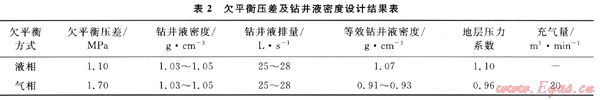2.1 欠平衡壓差設計