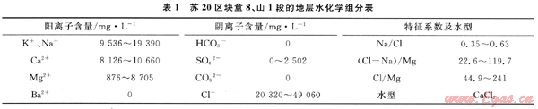 1) 蘇20區(qū)塊地層水型為CaCl2型,礦化度大,具有沉積水經(jīng)漫長的水巖作用,深循環(huán)、徑流停滯或交替緩慢、深度濃縮、正變質(zhì)特征。