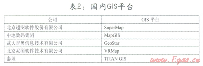 目前,國內(nèi)外的GIS平臺縱多,詳見表l和表2。