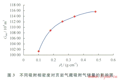 3)筆者探索性地研究了吸附相密度對頁巖氣地質(zhì)儲量的影響。隨吸附相密度增大,頁巖氣藏吸附氣儲量增大,而總地質(zhì)儲量略有減小。對于儲層溫度、壓力、孔隙半徑與吸附相密度的關系及最終對儲量計算的影響還有待進一步研究。