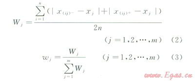 最后,對各指標(biāo)的變異系數(shù)歸一化處理,計算指標(biāo)權(quán)重(wj):