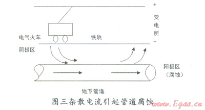 2)雜散電流。所謂雜散電流是指沿規(guī)定回流以外流動(dòng)的電流。雜散電流流出的地方成為腐蝕電池的陽(yáng)極區(qū),腐蝕破壞就發(fā)生在這個(gè)地方,金屬損失量與流過(guò)的雜散電流的電量成正比,符合法拉第定律,即一安培電流流過(guò)一年就相當(dāng)于約九公斤的鐵發(fā)生電化學(xué)腐蝕而溶解掉了,可見雜散電流引起的腐蝕是相當(dāng)嚴(yán)重的。