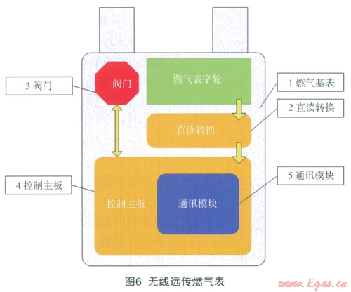 無線遠傳燃氣表是在普通家用皮膜燃氣表上加裝光電直讀計數(shù)器、電子控制模塊、無線通訊模塊等電子模塊組成的,如圖6所示,無線遠傳燃氣表安裝在用戶家中,燃氣公司以無線手持機或者采集器為無線數(shù)據(jù)傳輸媒介,對燃氣表實行戶外實時抄表和遠程閥門控制。主要功能包括以下幾點: