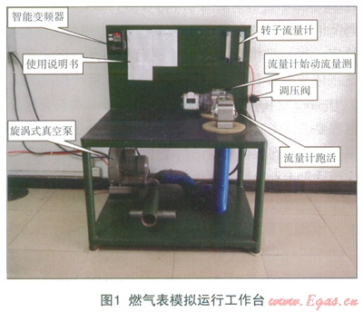 為此,工作人員提出了自行設(shè)計(jì)制造燃?xì)獗砟M運(yùn)行工作臺(tái)的方案,工作臺(tái)南旋渦式真空泵、智能變頻器、轉(zhuǎn)子流量計(jì)、調(diào)壓閥、硅膠墊及不同口徑氣管等組成,共有兩路氣源:一路來(lái)自旋渦式真空泵,流量能達(dá)到(0~190)m3/h,;另一路空氣壓縮機(jī),通過(guò)減壓閥將0.75MPa的氣壓降到0.05MPa,末端安裝兩個(gè)轉(zhuǎn)子流量計(jì),將流量控制在(0.016~0.4)m3。