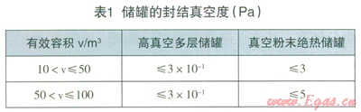 (2)設(shè)計(jì)文件應(yīng)對LNG儲(chǔ)罐提出明確的保冷指標(biāo)要求。不論是真空粉末絕熱儲(chǔ)罐還是高真空多層絕熱儲(chǔ)罐對保冷都應(yīng)有明確的要求,即某體積的儲(chǔ)罐都應(yīng)對應(yīng)相應(yīng)的真空度和靜態(tài)蒸發(fā)率,超過這些數(shù)值指標(biāo)就達(dá)不到保冷效果,蒸發(fā)氣體產(chǎn)生量就會(huì)增加,應(yīng)及時(shí)抽真空處理或采取其他措施。綜合相關(guān)規(guī)范和工程實(shí)踐,提出儲(chǔ)罐的保冷指標(biāo)要求,儲(chǔ)罐的封結(jié)真空度指標(biāo)要求見表1,靜態(tài)蒸發(fā)率指標(biāo)(上限)要求見表2。