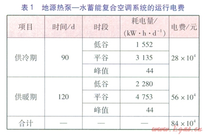 ①地源熱泵一水蓄能復(fù)合空調(diào)系統(tǒng)運(yùn)行電費(fèi)