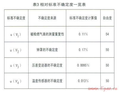 4.4 相對(duì)標(biāo)準(zhǔn)不確定度一覽表(見(jiàn)表3)