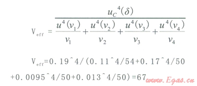 合成標(biāo)準(zhǔn)不確定度的有效自由度Veff: