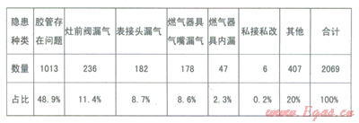 (3)東莞新奧2012年1—4月戶內(nèi)安全隱患類型分析,見表l: