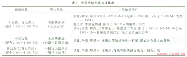 中國大陸的形成及演化情況如表l所示。