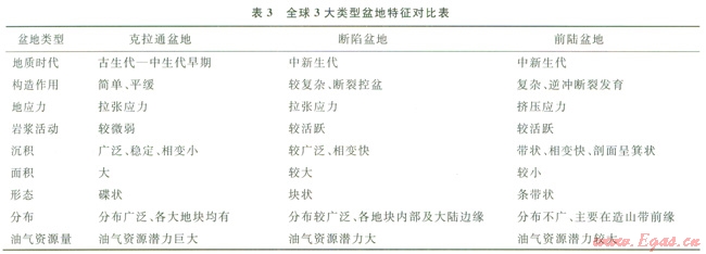 4 全球3大類沉積盆地特征對比