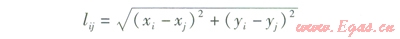 文獻(xiàn)[7—8]認(rèn)為燃?xì)夤芫W(wǎng)造價近似為管長的線性函數(shù),基于這種理論,當(dāng)量費(fèi)用長度lw,ij的計算式為: