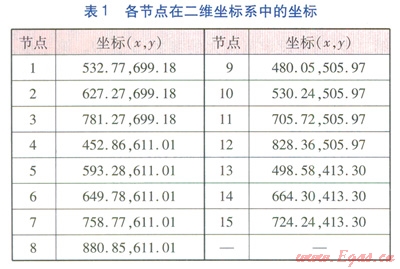 xi、yi——節(jié)點i在二維坐標(biāo)系(xOy)中的坐標(biāo)
