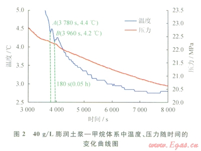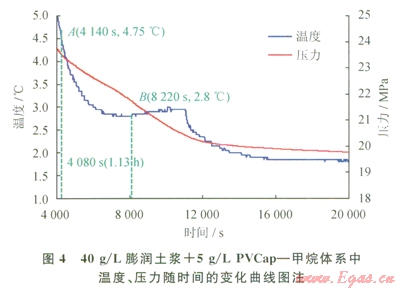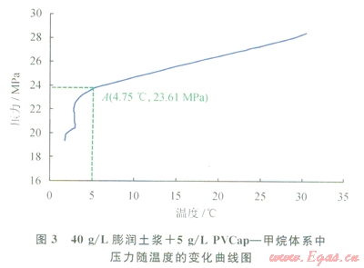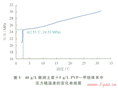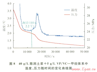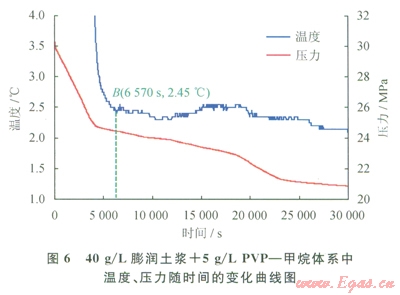 PVP作為第一代天然氣水合物動力學抑制劑的代表,近年來應用較多。圖56反映了加入PVP后膨潤土漿中水合物的生成過程。