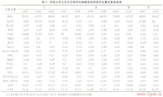 近幾年,在祁連山凍土區(qū)水合物科學(xué)試驗(yàn)鉆探過(guò)程中,觀察到大量與水合物伴生的碳酸鹽礦物,這些伴生碳酸鹽礦物(或部分)是否與水合物存在著某種成因上的聯(lián)系,還不得而知。由于碳酸鹽礦物?;煊兴樾汲练e且難以與碎屑沉積分選開(kāi)來(lái),筆者以祁連山凍土區(qū)新近發(fā)現(xiàn)的與水合物伴生碳酸鹽礦物及其混雜的碎屑沉積(統(tǒng)稱(chēng)碳酸鹽巖)為研究對(duì)象,從分析伴生碳酸鹽礦物所在沉積巖中主量元素、微量元素、稀土元素等特征入手,探討伴生碳酸鹽礦物可能物質(zhì)來(lái)源與沉積條件,試圖揭示不同產(chǎn)狀伴生碳酸鹽巖同水合物的內(nèi)在成因聯(lián)系。