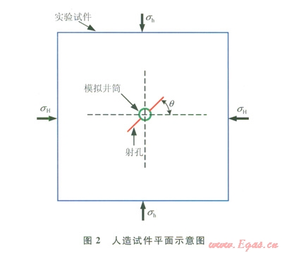 以上情況與定向射孔參數(shù)和目標地層性質(zhì)(地應(yīng)狀態(tài)、地層非均勻性等)密切相關(guān)。然而目前對此問研究甚少。筆者采用大型真三軸水力壓裂物理模擬驗系統(tǒng)[13]進行了室內(nèi)物模實驗,研究了定向射孔水壓裂人工水力裂縫的形態(tài)和影響因素,并對完井和裂施工提出了一些工程建議。