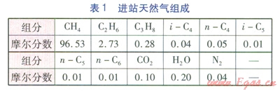 某城市的天然氣門站需將壓力為5.0MPa,溫度為25℃,流量為7.0×104m3/h(標(biāo)態(tài)為15.56℃,101325Pa)的高壓天然氣降壓到0.2MPa,其調(diào)壓過程采用圖l所示的天然氣部分液化調(diào)峰型LNG生產(chǎn)工藝流程。進(jìn)站天然氣組成見表1。