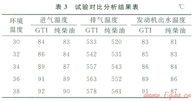 適用性試驗(yàn)結(jié)論為:環(huán)境溫度較高時(shí),發(fā)動(dòng)機(jī)的排氣溫度和出水溫度均比純柴油的高,且出水溫度接近或超過報(bào)警值90℃;使用GTI的濟(jì)柴機(jī)組完全滿足正常鉆進(jìn)、提空游車、啟動(dòng)鉆井泵、起下鉆等工況,司鉆操作方法與純柴油相同;GTI保護(hù)比較完善,在參數(shù)超過報(bào)警值時(shí),會(huì)自動(dòng)切換成純柴油模式。