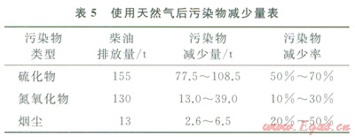 2)環(huán)境保護(hù)。使用天然氣后能夠有效降低大氣污染物的排放量。根據(jù)當(dāng)前已經(jīng)使用的天然氣數(shù)量,減排情況如表5所示。