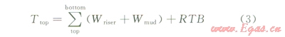 隔水管張緊力Ttop計(jì)算公式如下: