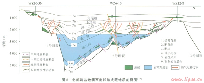 北部灣盆地石油勘探始于20世紀(jì)70年代,大規(guī)模始于80年代以后,古近系斷裂復(fù)雜,油田均呈復(fù)式油氣藏。截至目前,該盆地累計發(fā)現(xiàn)l0多個油田,探明石油地質(zhì)儲量數(shù)億噸,還沒有發(fā)現(xiàn)獨立的商業(yè)氣藏,是一個油型盆地。