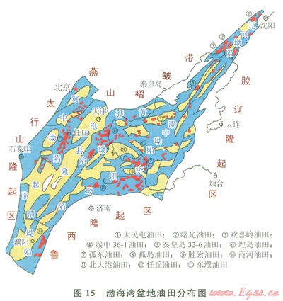 渤海灣盆地油氣勘探大規(guī)模始于20世紀(jì)50年代;60-80年代是陸地區(qū)油田發(fā)現(xiàn)的高潮期,先后發(fā)現(xiàn)了勝利油田、大港油田、華北油田、遼河油田、中原油田;20世紀(jì)80年代以來,渤海海域接連發(fā)現(xiàn)一批大油田。渤海灣盆地目前已發(fā)現(xiàn)數(shù)百個油田及一批中小氣田;原油儲量累計上百億噸,天然氣儲量累計約2000×108m3,主要是溶解氣;石油主要形成于新生界,氣層氣主要形成于古生界;呈現(xiàn)出原油非常富、天然氣相對少的格局。