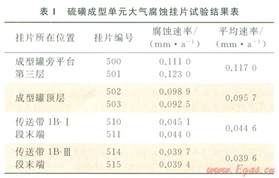 1)高含硫凈化廠硫磺成型單元大氣腐蝕不可忽視,尤其在硫磺成型罐周圍,因溫度較高、空氣濕度較大,加上液硫帶入的少量酸性氣,失重腐蝕速率超出凈化廠腐蝕控制標(biāo)準(zhǔn)。
