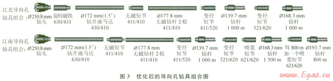 5)改進(jìn)技術(shù)細(xì)節(jié)。改進(jìn)控向線在鉆桿內(nèi)的固定方式,避免了在長距離管道穿越過程中高速流動(dòng)的鉆井液對(duì)控向線長時(shí)間沖刷而引發(fā)的短路現(xiàn)象。合理配置噴漿短節(jié)的數(shù)量以及水嘴孔徑,使得在保持充分潤滑孔壁、減少摩擦阻力的同時(shí),保證了鉆井液馬達(dá)的工作效率,提高了鉆進(jìn)速度,縮短了導(dǎo)向孔的施工時(shí)間。