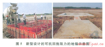 1)設(shè)計(jì)特殊地錨。通過計(jì)算回拖阻力,設(shè)計(jì)了專門針對(duì)大噸位回拖阻力的地錨(圖5),以抵抗大的回拖阻力。