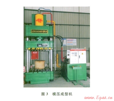 模壓成型工藝是將預(yù)混料或預(yù)浸料經(jīng)加熱、加壓固化成型的方法。把浸過(guò)膠的高強(qiáng)纖維布經(jīng)過(guò)烘爐烘至半干,檢測(cè)其含膠量。若含膠量不符合要求,則調(diào)整膠輥增加或減少含膠量。把檢測(cè)合格的纖維布裁成布片,裁片數(shù)量按照制品厚度與單層厚度計(jì)算所得,通常厚度比理論厚度增加0.5mm為合適。調(diào)整纖維布鋪層及鋼板,推入模壓機(jī)模壓成型。