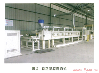 纏繞成型是在控制纖維張力和預(yù)定線型的條件下,利用了浸膠機(jī)、纏繞機(jī)等設(shè)備將連續(xù)的纖維粗紗或布帶浸漬了特殊樹(shù)脂膠液后纏繞在相應(yīng)制品內(nèi)腔尺寸的芯?;騼?nèi)襯上,使用固化爐控制升溫率加熱至設(shè)定溫度,使復(fù)合材料固化成要求的形狀。