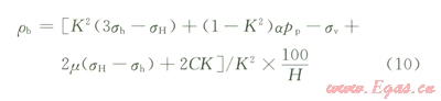 安全鉆井液密度窗口的上限,即地層破裂壓力當(dāng)量密度(rf)必須保證井壁不發(fā)生任何形式的破裂,應(yīng)當(dāng)取ra、rb和rx三者的最小值,即: