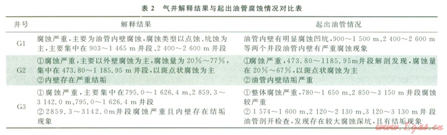 結(jié)合氣井更換油管作業(yè),將3口氣井起出油管的腐蝕情況與測(cè)井解釋結(jié)果進(jìn)行對(duì)比,結(jié)果見表2。