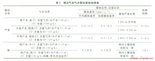 結(jié)合油管腐蝕因素分析情況以及靖邊氣田氣井腐蝕檢測(cè)結(jié)果,靖邊氣田氣井油管腐蝕總體規(guī)律見表3。