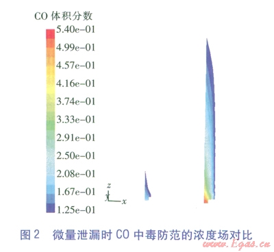 值得一提的是,火災(zāi)防范時只將爆炸極限列為危害區(qū)間,這符合不發(fā)生明火時的氣體冷態(tài)擴(kuò)散情況,但一旦發(fā)生燃燒,C0的濃度場將發(fā)生極大變化,還將產(chǎn)生對人員窒息的煙氣。FLUENT作為一款功能強(qiáng)大的軟件,也能模擬燃燒情況(俗稱熱態(tài)研究),但這將大大增加參數(shù)設(shè)定的復(fù)雜性和計算過程冗時性,這是工程計算力求避免的,但應(yīng)是理論研究的改進(jìn)方向。