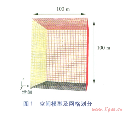 空間模型(見圖l)長200m、寬200m、高l00m,在200m×200m的平面中心設(shè)置1個2m×2m