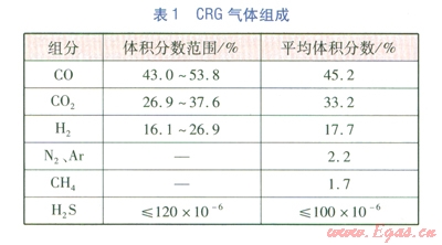 CRG是在COREX非高爐煉鐵反應(yīng)時產(chǎn)生的氣體,屬于人工煤氣,沒計輸送壓力為0.2 MPa,標(biāo)準(zhǔn)狀態(tài)下的低熱值為8.231MJ/m3,其一氧化碳含量較高,氣體組成見表1。