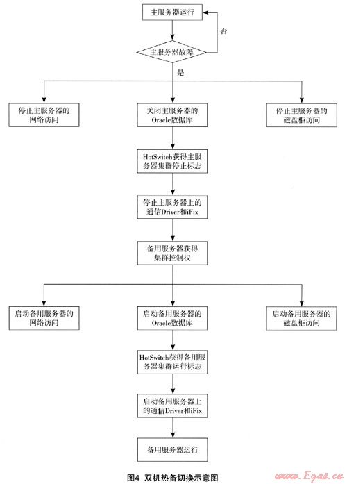 整個(gè)系統(tǒng)的切換由集群管理軟件和HotSwitch軟件管理,其關(guān)系如圖3。