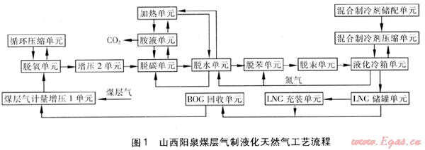 山西陽(yáng)泉煤層氣制液化天然氣工藝流程見(jiàn)圖1。