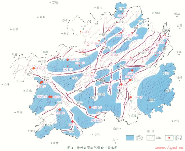 根據(jù)國土資源部油氣資源戰(zhàn)略研究中心組織實(shí)施的全國頁巖氣資源潛力調(diào)查評(píng)價(jià)及有利區(qū)優(yōu)選成果,全國頁巖氣地質(zhì)資源潛力為134.42×1012m3 (不含青藏區(qū)) [1],貴州省為13.48×1012m3,占總量的10.03%。