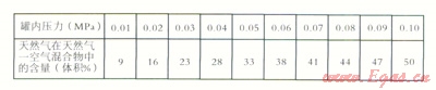 浸灌置換裝置研制時,是采用只混氣不置換,即用10份天然氣混1份空氣達(dá)劍蚩換的目的。應(yīng)該說這是個創(chuàng)新、有價值的設(shè)想。有同行提出罐內(nèi)會形成三角形或平面形界面。理由是天然氣比空氣輕一半,天然氣凝聚在上,空氣凝聚在下,形成界面。罐內(nèi)天然氣、空氣永遠(yuǎn)靜止有可能形成界面,實際情況是,置換過程中天然氣、空氣是在不停的流動、攪動,形成的是混合物。相當(dāng)於煤礦瓦斯氣(甲烷約占50%,空氣約占50%),在運(yùn)行過程中是不會形成界曲的。