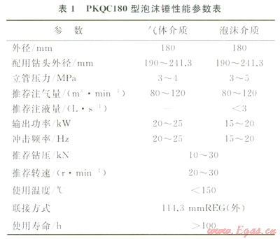 1)針對(duì)空氣錘在出水地層適應(yīng)性差的問(wèn)題,研制了新型泡沫錘,能適應(yīng)氣體(干氣)和霧化泡沫(濕氣)鉆井介質(zhì),具備防止井下液體倒灌的能力。
