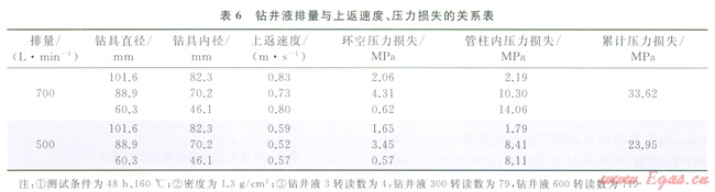 當(dāng)洗井的排量達(dá)到500L/min時,最小上返速度0.52m/s,累計壓力損失23.95MPa,能夠順利帶出12mm及以下直徑的水泥塊(表6),基本滿足洗井要求。