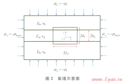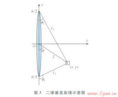 考慮裂縫平面上的應(yīng)力變化,假設(shè)二維人工垂直裂縫(圖3)。