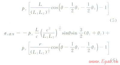 則在水平面上人工裂縫所引起的不同位置的誘導(dǎo)應(yīng)力為: